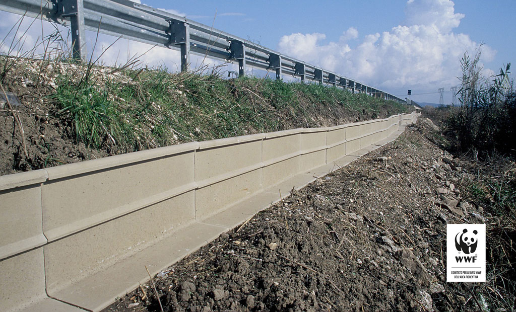 In collaborazione con l’Università degli Studi di Firenze, presso Sesto Fiorentino (FI): presso l’Oasi WWF Area Erpetologica Protetta Val di Rose, sul lato che fronteggia a nord le strade e i parcheggi del Nuovo polo Scientifico Universitario. Anno di realizzazione: 2013. Specie principali di riferimento: Triturus carnifex; Lissotriton vulgaris; Bufo viridis; Hyla intermedia; Pelophylax esculentus e Pelophylax lessonae. In questo caso l’intervento è finalizzato anche alla protezione del Riccio (Erinaceus europaeus) e di altre specie della piccola fauna terricola.