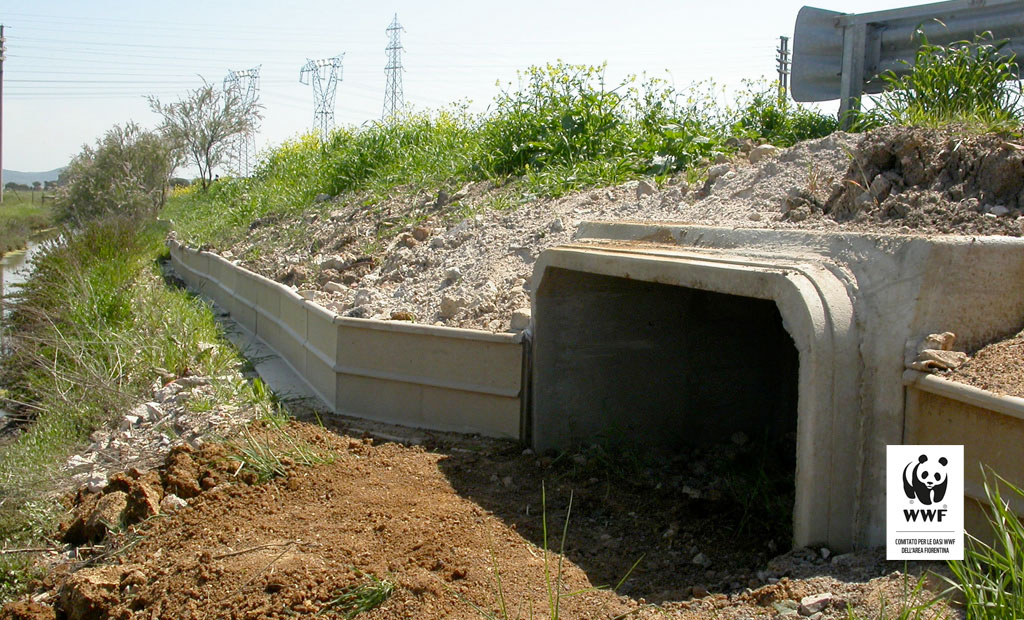 La grande strada di scorrimento detta “Della Vignarca” collegando Piombino con Follonica taglia in due l’Oasi WWF Orti-Bottagone costituita dalle ultime paludi che restano dell’antico Lago costiero di Piombino. L’alto traffico veicolare che vi circola ha costituito per anni la causa di morte non solo degli Anfibi ma anche di migliaia di individui appartenenti ad altre classi faunistiche. In occasione della necessità che emerse alla fine degli anni ’90 di progettare alcuni importanti lavori di rifacimento della strada a cura della Provincia di Livorno, il WWF propose di modificare il tracciato e di farlo passare a nord dei due habitat palustri. Non essendo questa soluzione praticabile si decise di comune accordo fra gli Enti di prevedere nel tratto più a rischio di attraversamento delle specie un intervento specifico finalizzato a ristabilire completamente la connessione ecologica fra le due aree precedentemente separate. L’intervento, unico al mondo nel suo genere, progettato in collaborazione fra WWF (nella persona del Dr. Carlo Scoccianti) e l’Ufficio tecnico della Provincia, fu realizzato nel 2003 ed è consistito nel “rialzamento” di circa quattro metri della strada rispetto al piano di campagna con costruzione di un viadotto di 215 m, composto da  9 campate. Lo spazio atto al passaggio delle specie, compreso fra il piano di campagna e la parte inferiore di ogni campata, è di circa 1,6 m. Prima e dopo il tratto stradale sopraelevato sono inoltre state messe in opera alcune centinaia di metri di barriere antiattraversamento per fauna minore, allo scopo di convogliare opportunamente gli individui sotto il viadotto e aumentare dunque l’efficacia della nuova soluzione per un tratto ancora più ampio.